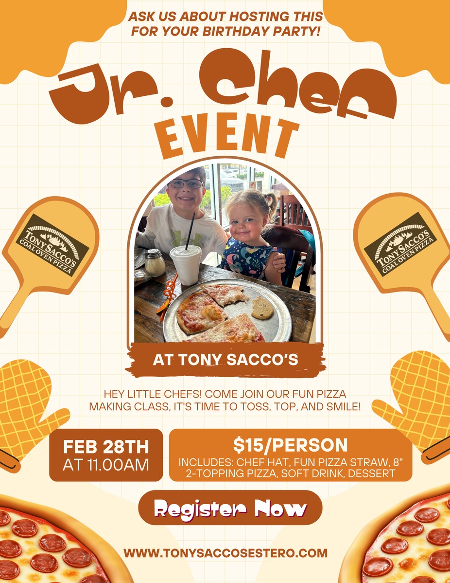 💵 Price per child: $15** – includes chef hat, 2-topping pizza, dessert, and fun pizza straw ⏰ Saturday, February 28 at 11AM