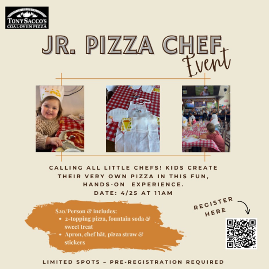 Calling all young chefs! Our Jr. Chef Event is a fun, hands-on cooking experience designed especially for kids. Participants will roll up their sleeves and step into the kitchen to create their very own pizza while working alongside our team in a welcoming and interactive environment.
