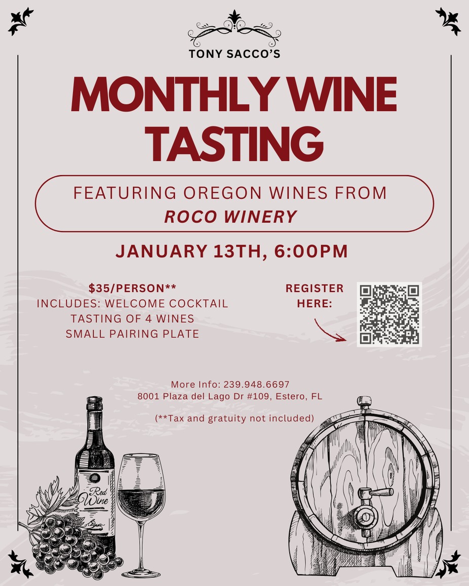 Monthly Tasting Featuring Oregon Wine from ROCO Winery