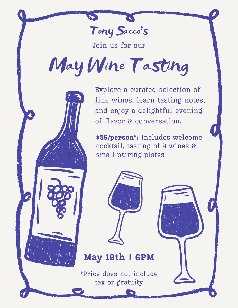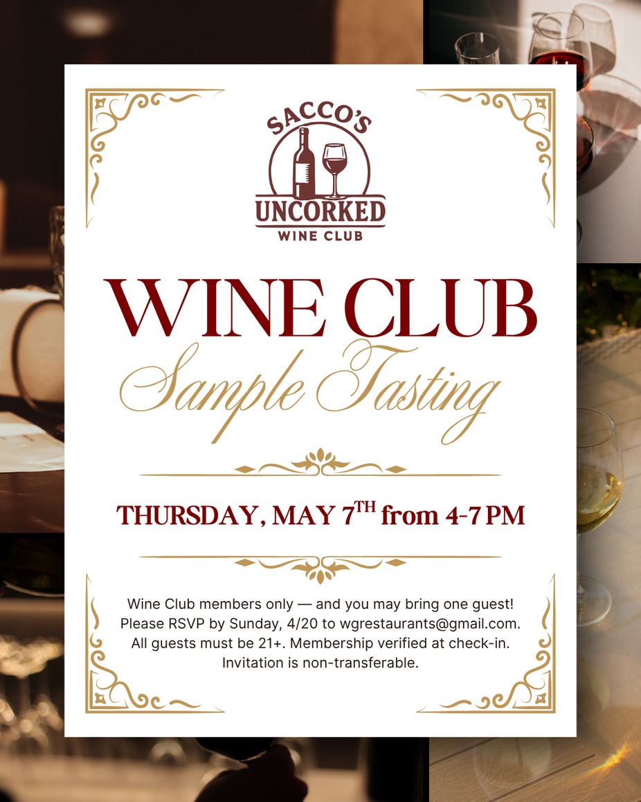 Join us for an evening of exceptional wines, delicious pairings, and great company at Tony Sacco’s.
